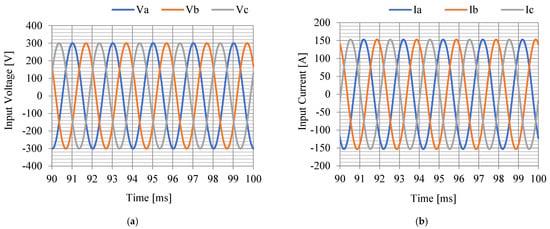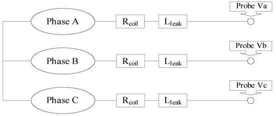 The power control system (PCS) is added to the actual power generation system, but the load library is assumed in the finite element analysis for simulation. Figure 12 shows the coupling circuit diagram used in simulation. When the FESS rotates at 30 krpm, the output is changed by adjusting the Rload value, so that the output power is 300 kW when the load circuit is turned on. When decelerating to 15 krpm, Rload should be changed to output 300 kW.