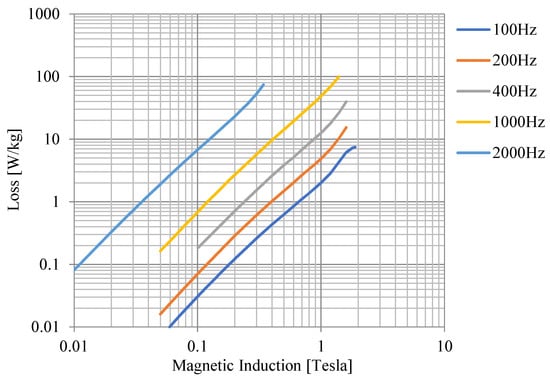 Using the above equations, the relationship between core loss and frequency of 20PNF1500 can be obtained, which is depicted in Figure 16.