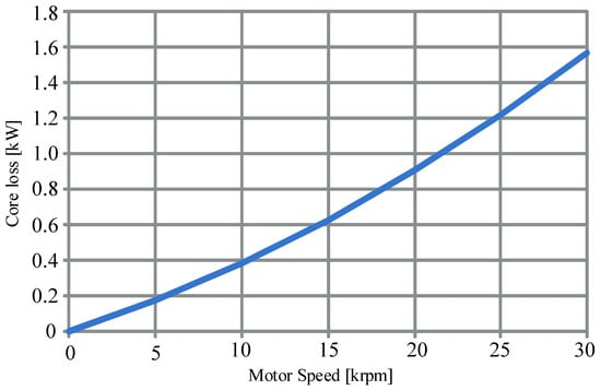 Even when the permanent magnet rotor of a permanent magnet synchronous motor rotates freely, it will cause core loss in the stator core. The change in core loss with speed is shown in Figure 17, and the value of loss is listed in Table 5.