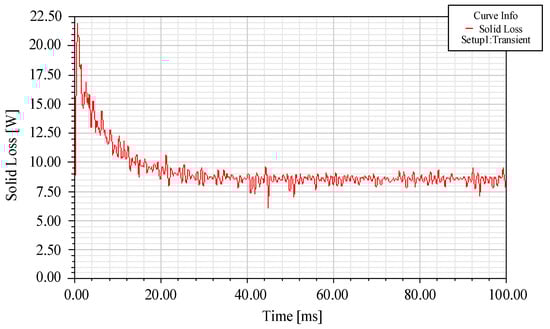 Among the above losses, the basic copper loss of the stator winding can be obtained by the winding current value and the resistance value. Although it is difficult to obtain the high-frequency additional copper loss of the winding accurately through analytical methods, the high-speed electrical circuit coupled transient finite element analysis can obtain a more accurate calculation result of the high-frequency loss of the stator winding. To calculate stator iron loss, the current more classic calculation method is to establish a discrete Bertotti’s iron loss model, which means the iron loss is divided into three parts, namely hysteresis loss, classic eddy current loss and abnormal eddy current loss [21]. The accuracy of iron loss calculation depends on two conditions. One is that the loss coefficient of the iron core material should be selected correctly; the other is that the magnetic flux density of each part of the iron core should be calculated correctly. For high-speed motors, due to the relatively high speed of the rotor, the air friction loss on the surface of the rotor is much greater than that of ordinary motors. At the same time, in order to avoid high-frequency electromagnetic waves from causing hysteresis loss and eddy current loss in the permanent magnet, a metal shielding sleeve is usually installed on the surface of the permanent magnet. However, how to calculate the eddy current loss in the sheath still needs to establish a model for analysis.