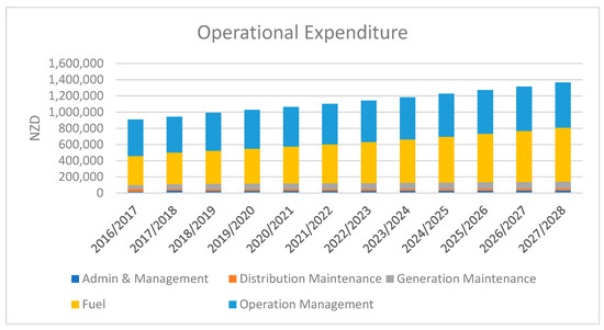 In the case of Stewart Island, fuel cost makes up 40% of operations and maintenance expenditure (Figure 2), so drives the price being charged to customers. Fuel cost is on a 5% annual increase, and additionally, fuel consumption is anticipated to increase 1% annually, which either will increase the cost of electricity for islanders or will decrease the overall income of the supply authority [15].