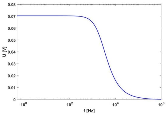 Using the MATLAB/Simulink software, the frequency spectrum of the analyzed 1.2/50 µs voltage surge impulse with amplitude 1 kV was determined. The results are shown in Figure 3.