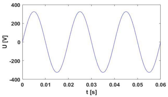 In the MATLAB/Simulink environment, based on the data contained in IEC 61000-4-5, the proprietary model of the voltage surge generator was developed. A double exponential mathematical relation that describes 1.2/50 µs open circuit voltage waveform u(t), is given by Equation (1) [30].