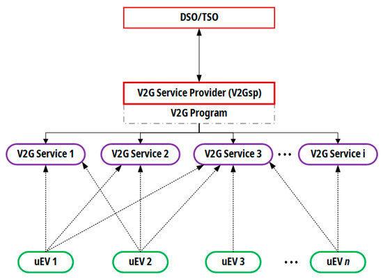Regardless of the number of services provided, the V2G Program should be based on the mutual relations between the participants. Figure 3 shows a scheme of relations between key actors and their role in the V2G Program.