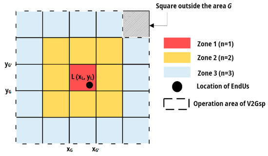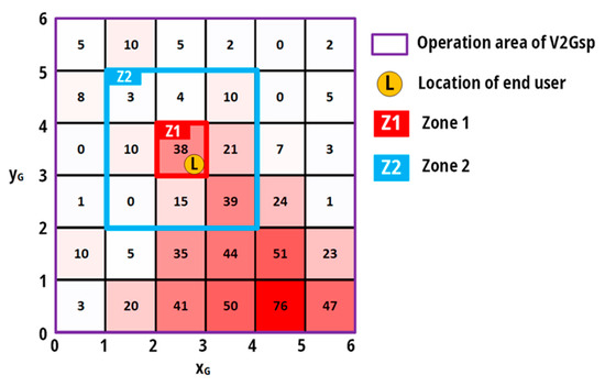 The end user will provide V2Gsp with data on the amount of energy in advance, so that V2Gsp is able to inform uEVs. The authors estimate that in the case of scheduled power outages for the end user, time t will be about 8 h, and in the case of unscheduled outages, energy should be enough for about 12 h. Given the relatively tight constraints on the transmission of power and energy from the charging point, the EndUs should choose its reserved energy demand wisely. However, the end user must not forget to possibly oversize their facility, so that more cars are able to provide V2G service.