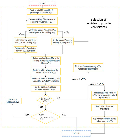 Moreover, in the proposed concept of V2G Program, there were examples of services included, which would be compliant with current legal conditions, and a business model of V2G service was also developed. The aim of this paper is to develop the design of V2G service models taking into account random events on the part of EV users, as presented in [27]. Verification of this model was presented in the novel algorithm for searching and selection of vehicles that will provide the aforementioned services.