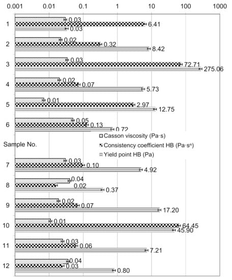 | HB (yield point, con-sistency coefficient) | the liquid is described by the Herschel–Bulkley rheological model |