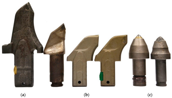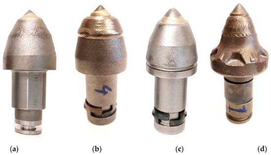 - Commercial picks for shaft-boring roadheaders—five pcs (Figure 11d);