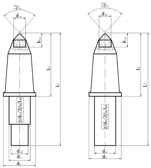 A better quality of pick increases the price. This translates into costs involved in purchasing picks and the costs associated with their replacements (operational costs) [29]. Therefore, the quality of picks should be relevant to the required design, material parameters and the rate of their wear. This becomes very important when a user is buying picks from various manufacturers and at different prices. Therefore, the user firstly should pinpoint their requirements and expectations concerning the design and material parameters of the picks. Secondly, a control method should be defined. Then, a decision, as to which picks meet the user’s requirements and expectations, is required, with a price adequate to its quality and the assumed cutting efficiency. Hence, a method of determining the quality of conical picks and a procedure for their selection should be applied [28,29].
