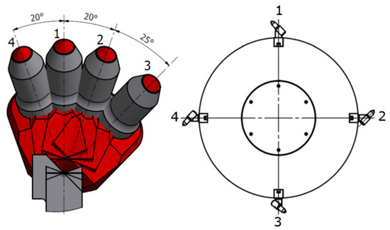 Machines and devices realising these processes are dedicated to each method and technology of exploitation (underground, open-pit, borehole). In underground mining, these are longwall shearers [3,10,13], roadheaders [2,5,6,7,14] and shaft shearers [15] or ploughs [9,10], whereas in road construction and open-pit mining, these are road milling machines, excavators and rippers [11]. The machines are equipped with cutting elements or units called cutting heads. The largest group of cutting heads are the milling heads (Figure 1) equipped with cutting picks, i.e., radial, tangent and conical picks (Figure 2). The latter are mainly applied in the mining of natural and artificial minerals [16,17,18,19]. They are widely used not only in underground or open-pit mining, but also in the construction industry.