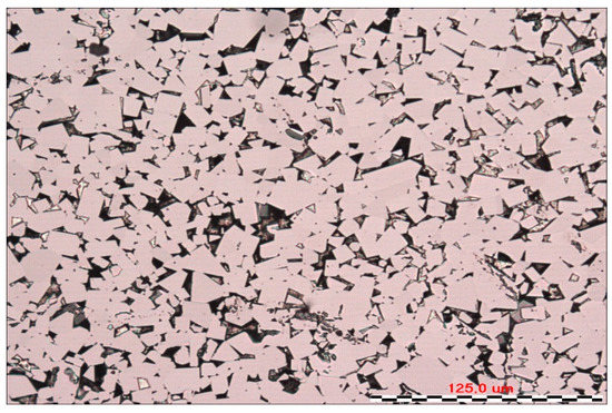 For WC-Co cemented carbide inserts, quantitative analysis of the WC carbide phase was also performed. For this purpose, the test specimens were prepared by the traditional method of grinding and polishing metallographic specimens using polish suspensions with a diamond grain, with coarseness values of 3 μm, 1 μm and 0.25 μm. The prepared specimens were subjected to chemical etching in order to reveal the boundaries of WC carbide grains (Figure 15) [45].