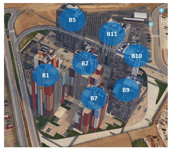 The case study is a neighborhood of seven tower buildings (called B1, B2, B5, B7, B9, B10 and B11), part of a new residential district under development in Milan, that overall involves a large urban surface of 920,000 m2 and, once completed, will include a large residential area of 4500 apartments, a school, and a few other commercial uses.