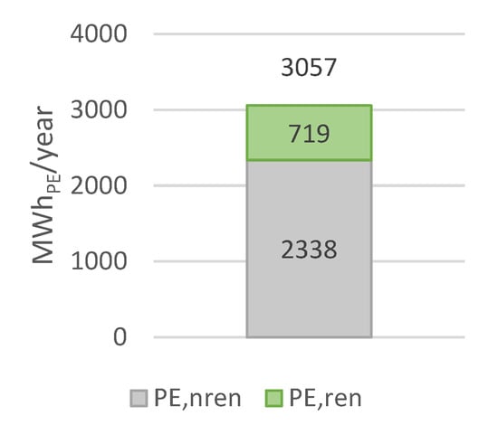 Figure 15 shows the primary energy consumptions of the entire parcel; the total PE is equal to 3057 MWh/year (107.6 kWh/m2/year). The renewable share is 24% (25.3 kWh/m2/year).