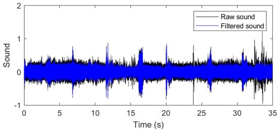 The sound emitted by the drone is assumed to contain a notable noisy component. To increase SNR we do band-pass filtering in the frequency domain. According to the fact that the informative part of the human voice does not exceed 4 kHz, this value is used as a cutoff frequency. We also add a lower boundary at 0.2 kHz. Therefore, we modify the Equation (