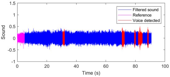 Visualisation of the voice detection results on a band-pass filtered signal.
