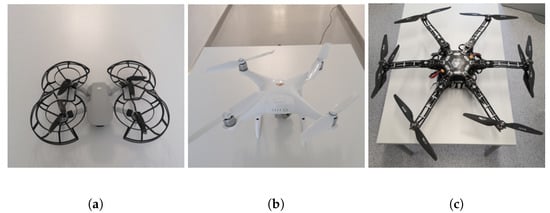 To evaluate the efficiency of the presented method, several lab condition experiments have been performed. We investigated the impact of the drone’s flight conditions on the performance of our algorithm. During the validation experiments, we have additionally tested two other drones of different sizes (see