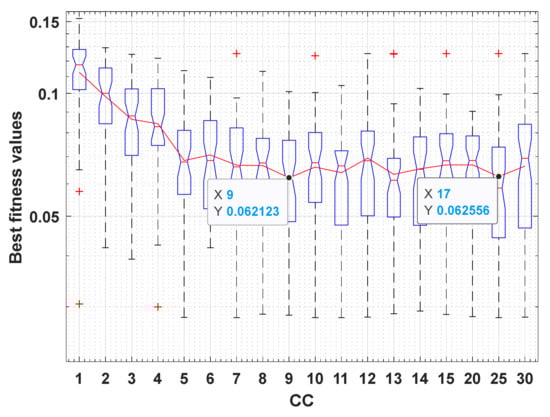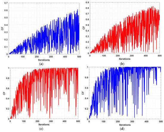 1. Calling initialization (N, d, LB, UB) 2. . 3. Evaluate the fitness of using Equation (17). 4. , set the current fitness values in a vector called old fitness, . 5. : is a ranking vector of N cells with an initial value 0 6. Find the best whale 7. 8. while ( < ) 9. for each whale 10. Update a, A, p, C, and l 11. if () 12. if () 13. Update using Equation (4) 14. else 15. Update using Equation (11) 16. end if 17. else 18. Update using Equation (9) 19. end if 20. If 21. Calculate using Equation (14) 22. Update using Equation (16) 23. End 24. If < 25. 26. 27. 28. Else 29. 30. 31. End 32. Calculating the fitness of the using Equation (17) 33. end for 34. Update the best whale with if better 35. ++ 36. end while. |