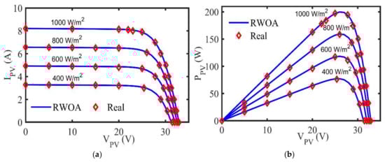 - ElAzab, O.S.; Hasanien, H.M.; Elgendy, M.A.; Abdeen, A.M. Parameters estimation of single- and multiple-diode photovoltaic model using whale optimisation algorithm. IET Renew. Power Gener. 2018, 12, 1755–1761. [Google Scholar] [CrossRef]