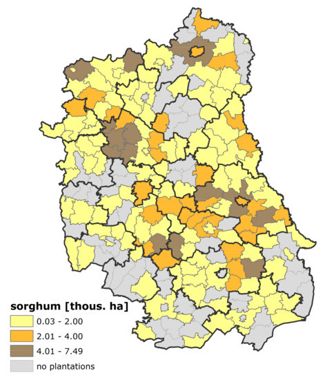Spatial allocation of sorghum’s supply by gminas (NUTS-5 level).