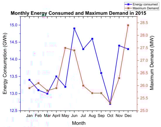 The 2015 monthly energy consumption and maximum demand for the Mimosa mine.