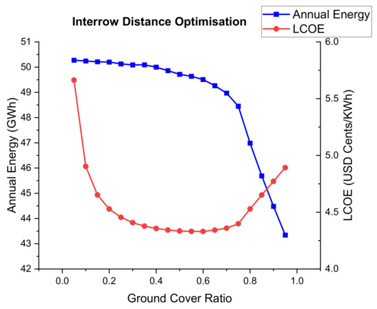 The recommended DC to AC ratio (form factor) to avoid inverter clipping losses is between 1.0 and 1.1 [35]. The proposed form factor for the project is 1.05. The tilt angle, azimuth angle and interrow space will be optimised through parametric analysis based on the energy produced and the LCOE. The key technical parameters used for the model are given in Table 6 below.