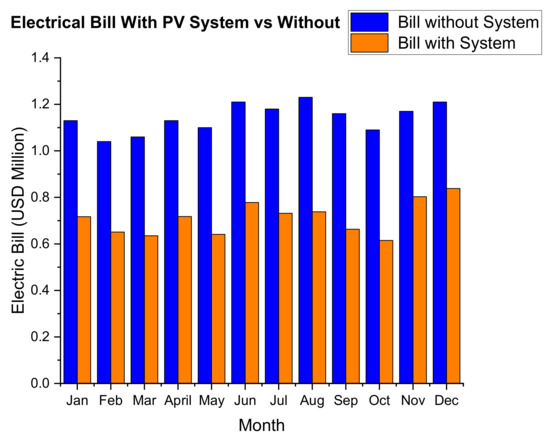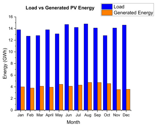 A PV plant differs from convectional electrical systems because its performance is naturally connected to the unique details of the site and the specifics of the plant design. This makes it very difficult to calculate the required capacity of the plant. The equation used to calculate power in the HOMER software was utilised to estimate the rated capacity of this project [33]. The rated capacity assumes that the modules are operating at Standard Test Conditions (STC).
