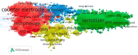 In the data, which was analyzed and sourced in the Web of Science by searching for “dye sensitized solar cells” the data was downloaded and processed with the VOSviewer tool, as described in this paper.