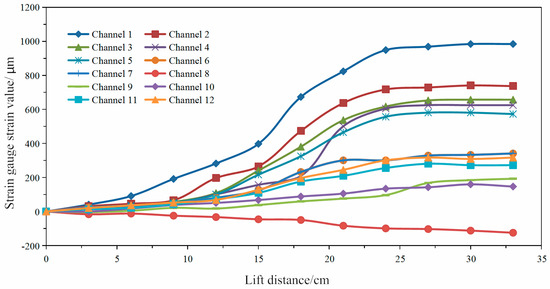 Figure 6 shows the typical stress relief curves at tested point 1. The stress relief curve shows good regularity, indicating that the working state of the strain gauge at the measuring point is normal. When the release distance does not reach the location of the strain gauge, the strain value is small, when the release distance is close to the location of the strain gauge, the strain value changes greatly, and when the release distance exceeds the location of the strain gauge, the strain value gradually stabilises. After the in-situ stress was measured, rock samples were collected, and the elastic modulus and Poisson’s ratio of the rock samples were measured (Table 2). By processing the measured data, the magnitude and direction of the in-situ stress components and principal stress of the tested point were calculated, which are summarised in Table 3.