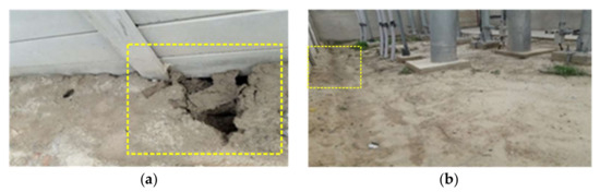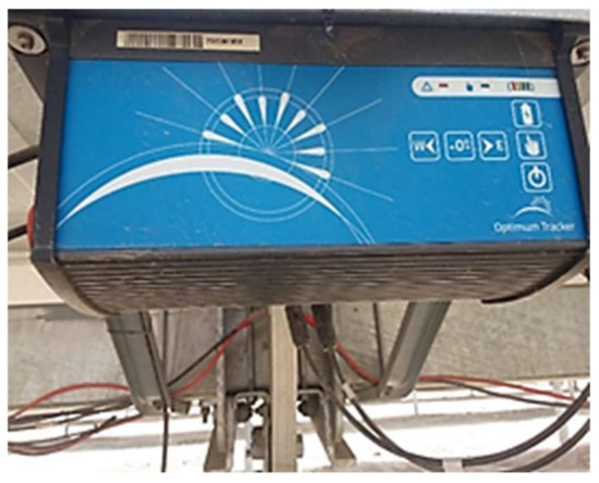 Each PV module mounted on the plant has a 320 Wp power rating, an open-circuit voltage of 31 V, polycrystalline silicon produced by Phono Solaras model PS 320P-24/T. Modules are installed in strings with a 7 m distance to avoid the impact of shading. These rows are seen in Figure 1a and an on-ground image shown in Figure 1b. Table 5 lists the main characteristics of the PV modules and inverters installed in the PV plant. Inverters from Sungrow (model SG 500 MX) have a 500 kW rating, a voltage range of 460–850 V, a frequency of 50–60 Hz, a rated 98.7% efficiency. PV modules (Phono Solar) are polycrystalline silicon made, 320 Wp, and rated at STC with an efficiency of 16.59%.