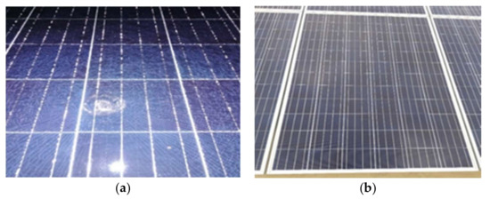 - Anti-reflective coating: losses caused by reflection are initial losses of solar PV systems while converting solar irradiation to energy. These losses are reduced by applying anti-reflective coatings to the modules already installed in the field. These coatings can increase the energy output by 3–4% [50]. A long-term field test was conducted to examine patterned and un-patterned anti-reflective films. Moth-eye pattern and micro-cone pattern were fabricated using ultraviolet-nanoimprint lithography, which does not use high-temperature or vacuum processes. In seven months of testing, moth-eye pattern film (patterned film) improved the transmittance by 5% and converted electricity by +2.85% than a flat un-patterned film [50].