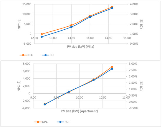 Hartner et al. [32] found that the optimum size of PV systems is affected by the difference between the variable components, retail prices including grid-related costs, taxes, payments to finance support schemes for renewables, and the price of the feed-in tariff.