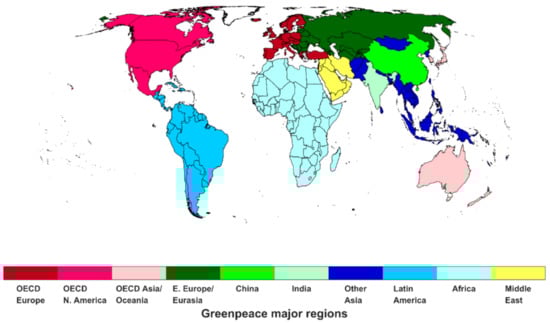 Aggregation of the countries to the Greenpeace major regions per definition as of [22].
