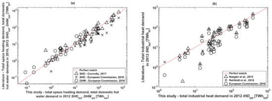 - Naegler, T.; Simon, S.; Klein, M.; Gils, H.C. Quantification of the European industrial heat demand by branch and temperature level. Int. J. Energy Res. 2015, 39, 2019–2030. [Google Scholar] [CrossRef]