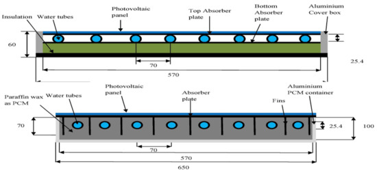 PVT-water and PVT-PCM-water configurations (reprinted from [116], with permission from publisher).