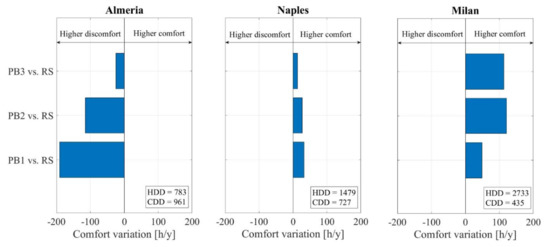 Thermal comfort variation in all the proposed dwellings compared to reference dwelling (reprinted from [120], with permission from publisher).