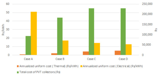 Another study [35] presented performance evaluation studies of water- and air-type PVT collectors. In addition, the application of PVT for various applications such as building integrated photovoltaic thermal systems, concentrated PVT systems and PVT coupled with a heat pump was discussed. Similarly, Kasaeian et al. [36] conducted a critical review on the application of PVT for combined heat and power systems and highlighted that the majority of studies were focused on thermal aspects, and economic analysis work was limited. The performance and economic feasibility of PVT system studies were summarized by Brahim et al. [37] who suggested that there is scope for research in techno-economic analysis of PVT system, PVT demonstration applications and feasibility studies. Wu et al. [38] studied the integration methods of PV to the thermal absorbers and suggested carrying out practical research on the long-term reliability of PVT modules during operation.