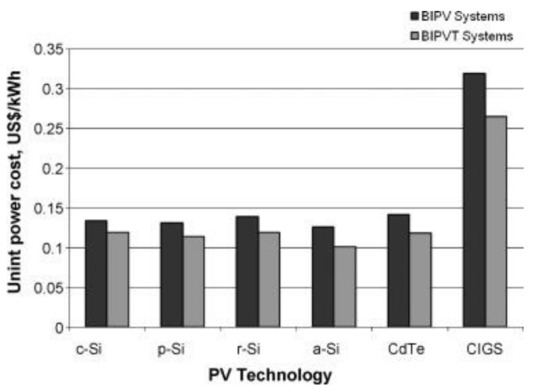 A BIPVT system cooled under natural convection and forced circulation was studied numerically using computational fluid dynamics and then experimentally by Corbin et al. [78]. It was observed that forced circulation could lower both the maximum and average PV cell temperature. Natural ventilation lowered the temperature of cells only when the inlet temperature is high, and insolation was significant. The amount of heat recovery using the pumped water was adequate, and the outlet temperatures reached 50 °C. The amount of useful thermal flux from the collector has a linear relation to insolation and inlet water temperature. The water-cooled BIPVT witnessed a 5.3% increase in electrical efficiency compared to the naturally cooled BIPVT.
