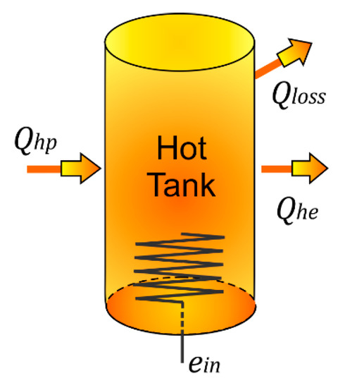 The thermal model for the hot tank is presented in Figure 4, and the corresponding energy balance for this component is described by Equation (5).