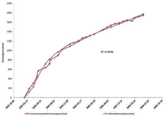 Matching between the results of the in-situ convergence measurements and the convergence values obtained using the numerical model.