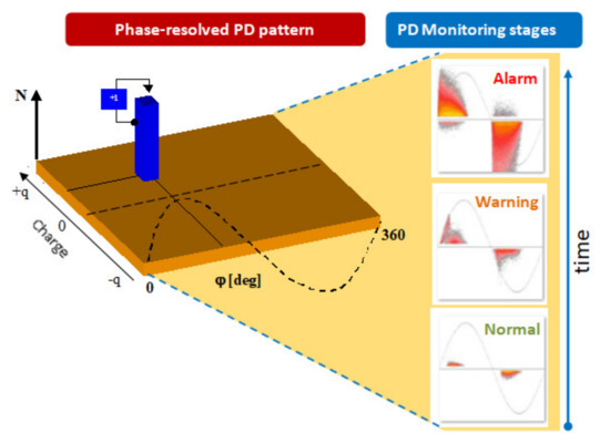 Visualization of partial discharge phase-resolved methodology along with exemplary monitoring sequence.