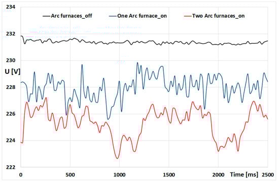 In the analyzed supply system arc furnace, voltage fluctuation compensation devices were not installed.