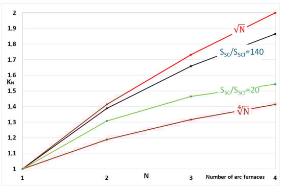 | KN | coefficient determining the increase in flicker of light depending on the number of parallel operating arc furnaces in steel plant |