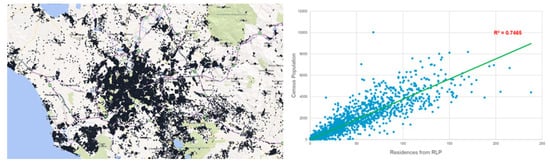 The procedure has been validated by comparing the resulting number of residences in each zone with the census population, thus showing a high correspondence (R2 equal to 0.7465, Figure 1).