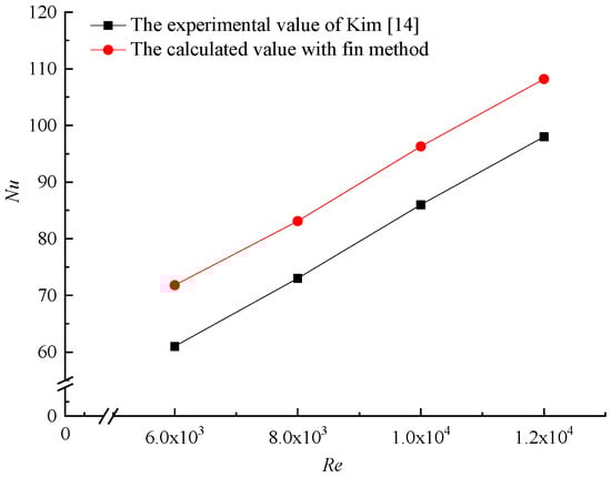 Comparison of the experimental value of Kim [] and the calculated value with fin method.