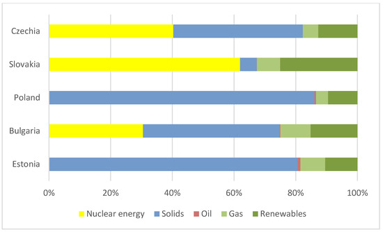 The situation of Poland in the field of ongoing energy transformation is extremely difficult because in the national energy system, 80% of all electricity is generated from hard coal and lignite, which is a unique situation among member states and requires a continuous process of restructuring of the Polish industry in order to adapt to integrated competitive conditions of energy markets [15,16,17,18]. The detailed analyses dealing with the energy situation in Poland, the process of restructuring the hard coal sector towards adaptation to environmental requirements, CSR reporting, and the current financial situation can be found in several publications [19,20,21]. The strategy of reducing fossil fuels induced significant energy dependence, especially in oil and gas. This led to the next summit of the European Union and the development of regulations regarding energy consumption and the percentage of renewable energy sources in the energy mixes [22].