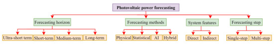 In [21,22], the PPF was classified into four distinguished classes according to the forecasting horizon, the forecasting method, and forecasting output, as shown in Figure 1.
