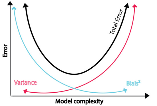 where σ ε 2 denotes the irreducible error. The optimal goal is to minimize both the variance and bias at the same time to reduce the errors. However, the bias-variance tradeoff is inversely proportional, as presented in Figure 2.