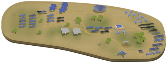 In this study, the data used for the numerical validation of the proposed model is obtained from an open source from a large-scale PV plant in the Desert Knowledge Australia Solar Center (DKASC), Alice Springs (AS), Australia, at a latitude 23 ° 76 S and a longitude 133°87 E) [60]. AS has a desert climate with scarce rainfall and frequent clear skies during the dry days and, therefore, comparatively rare output volatility in the PV generation due to sky cover during that period. Rainy days are frequently registered between November and February during the wet season leading to high PV uncertainty. For showcasing the PV systems’ repartition in DKASC, Figure 4, is represented.