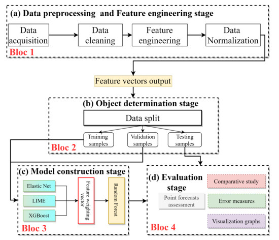 The proposed paradigm passes by four stages, specifically, data processing and feature engineering, object determination, model constriction, and evaluation as shown in Figure 9.