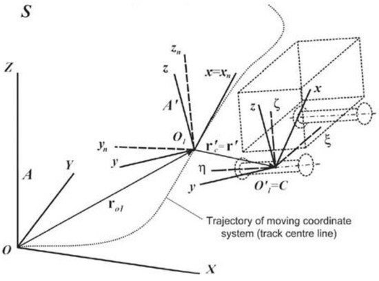It is also worthy of notice that in the current work, no track deformation—both lateral and vertical—caused by forces in the wheel/track contact is taken into account. The shape of the track is fixed and oriented in relation to the track center-line. The work has a theoretical character, and the analysis of track displacements is rather characteristic of works connected with railway maintenance.